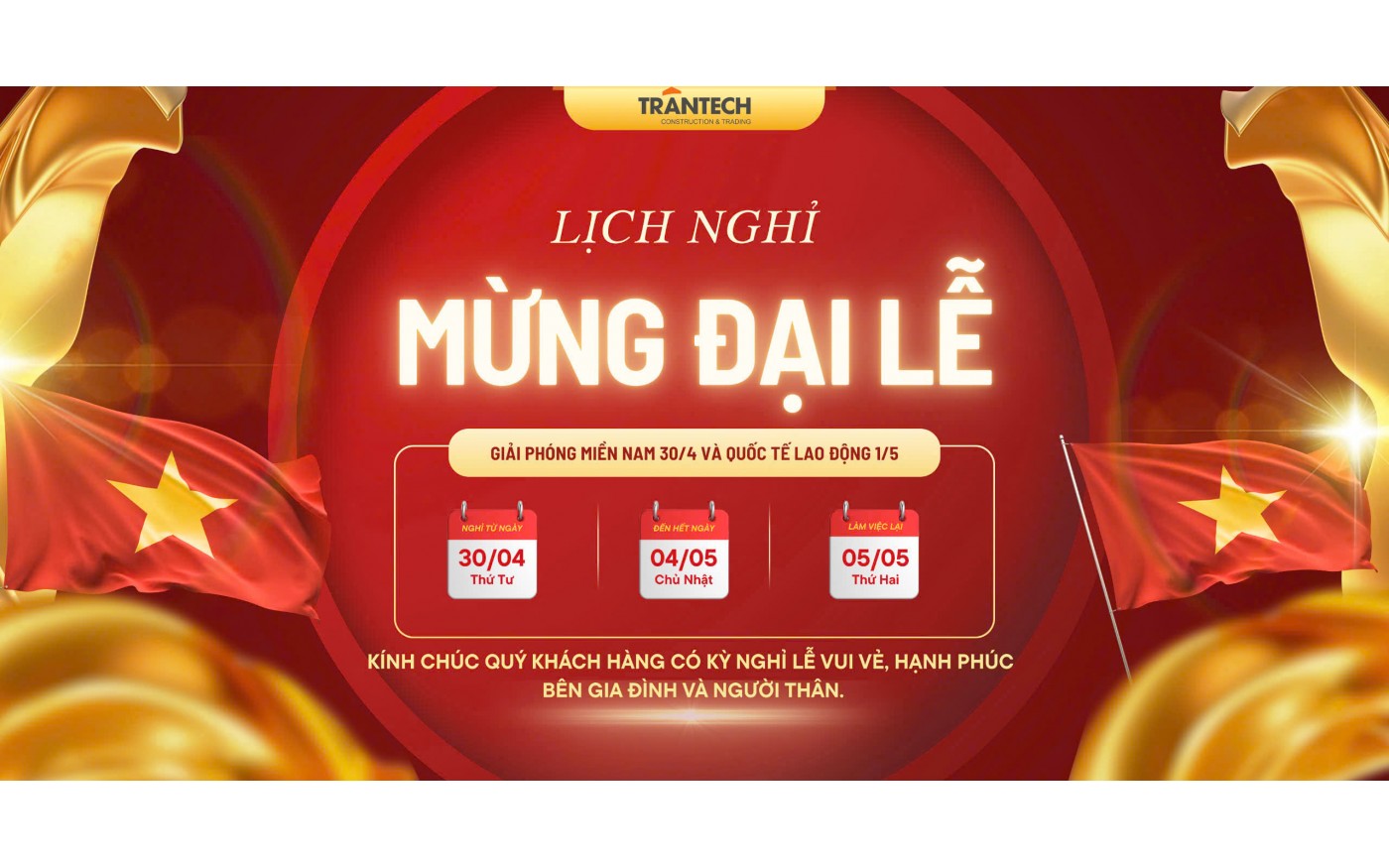 TRẦN TECH TRÂN TRỌNG THÔNG BÁO LỊCH NGHỈ ĐẠI LỄ 30/4 & 1/5